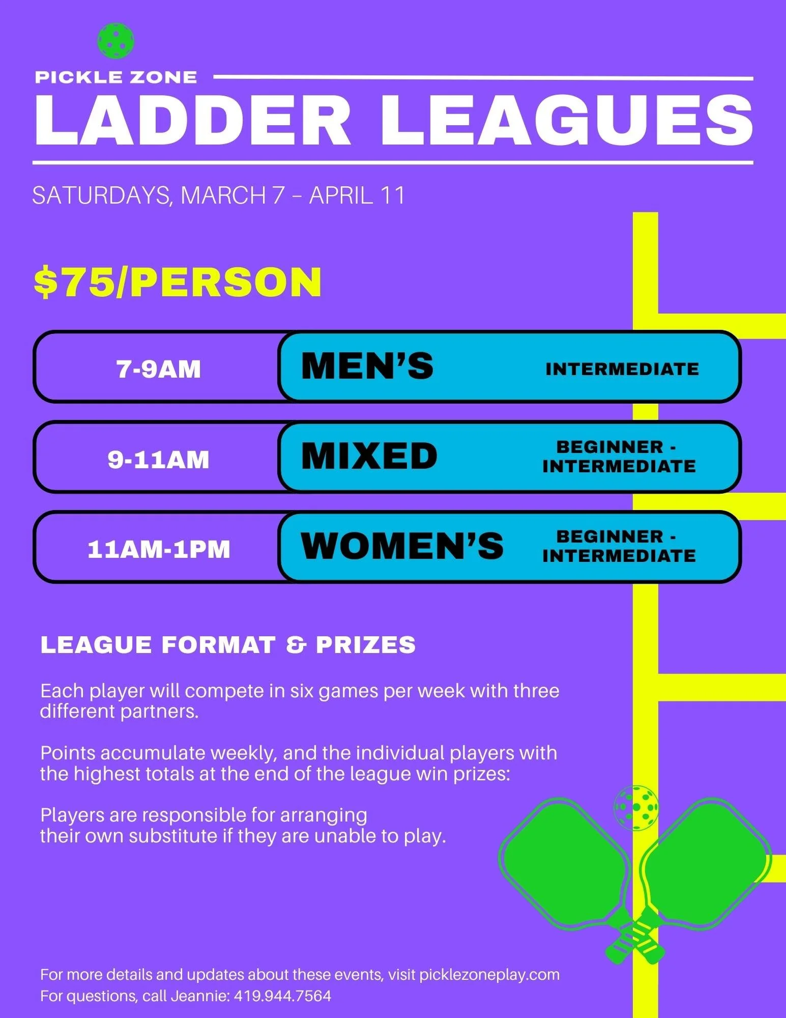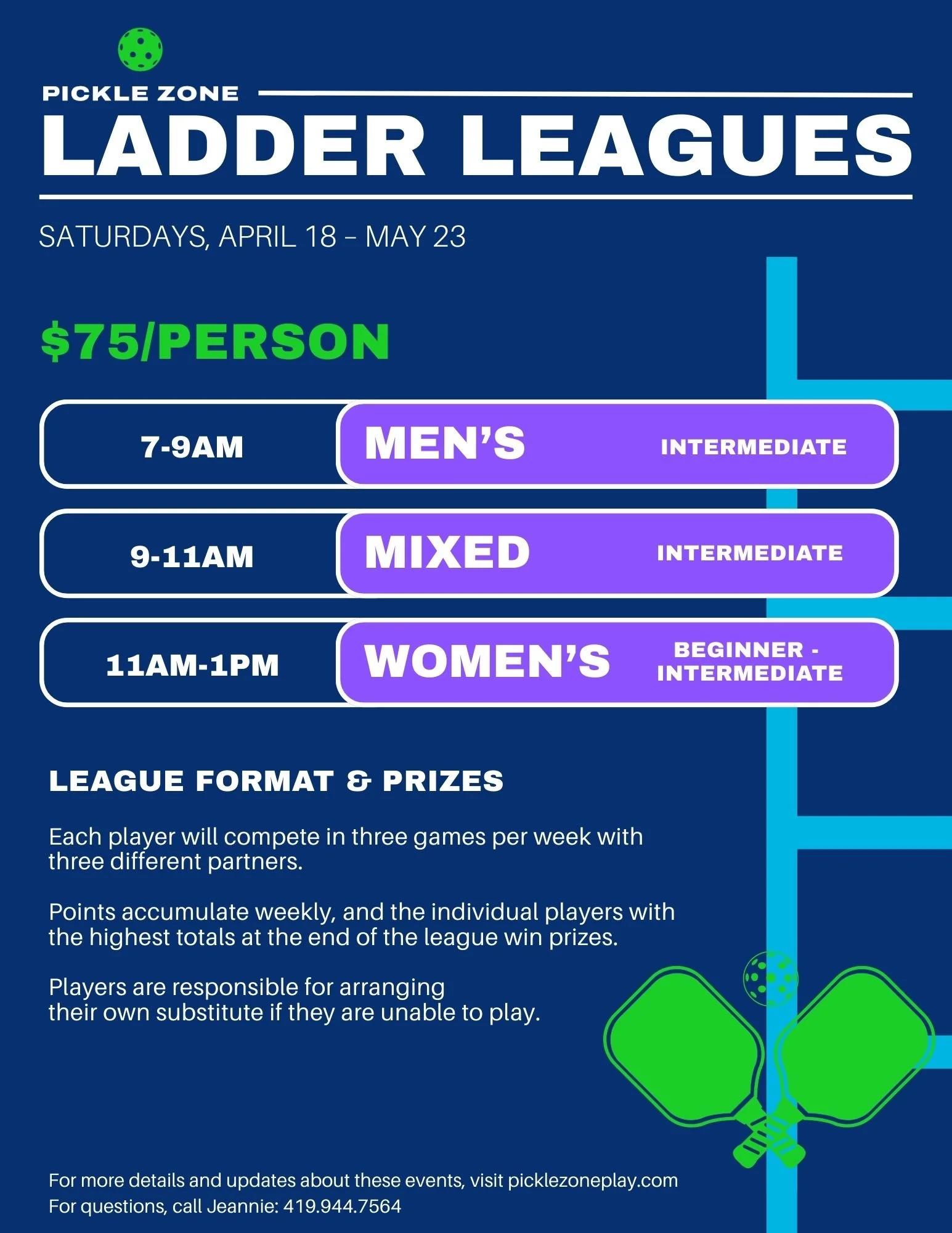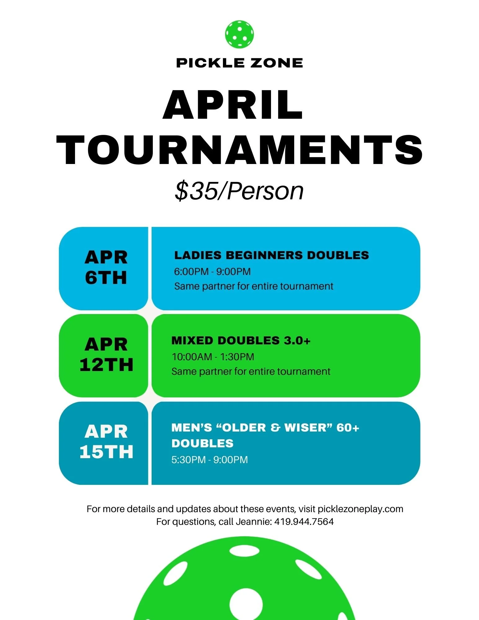 Interested in hosting your own private pickleball event? We’d love to help! Please contact Jeannie at 419.944.7564 to discuss availability and event options.